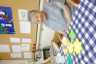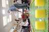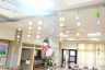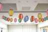 天井には提灯が張られ、壁には利用者様作品の半被やヒマワリが飾られています。