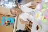 10月は運動会が開催されるということで、フロアには万国旗が飾られています。