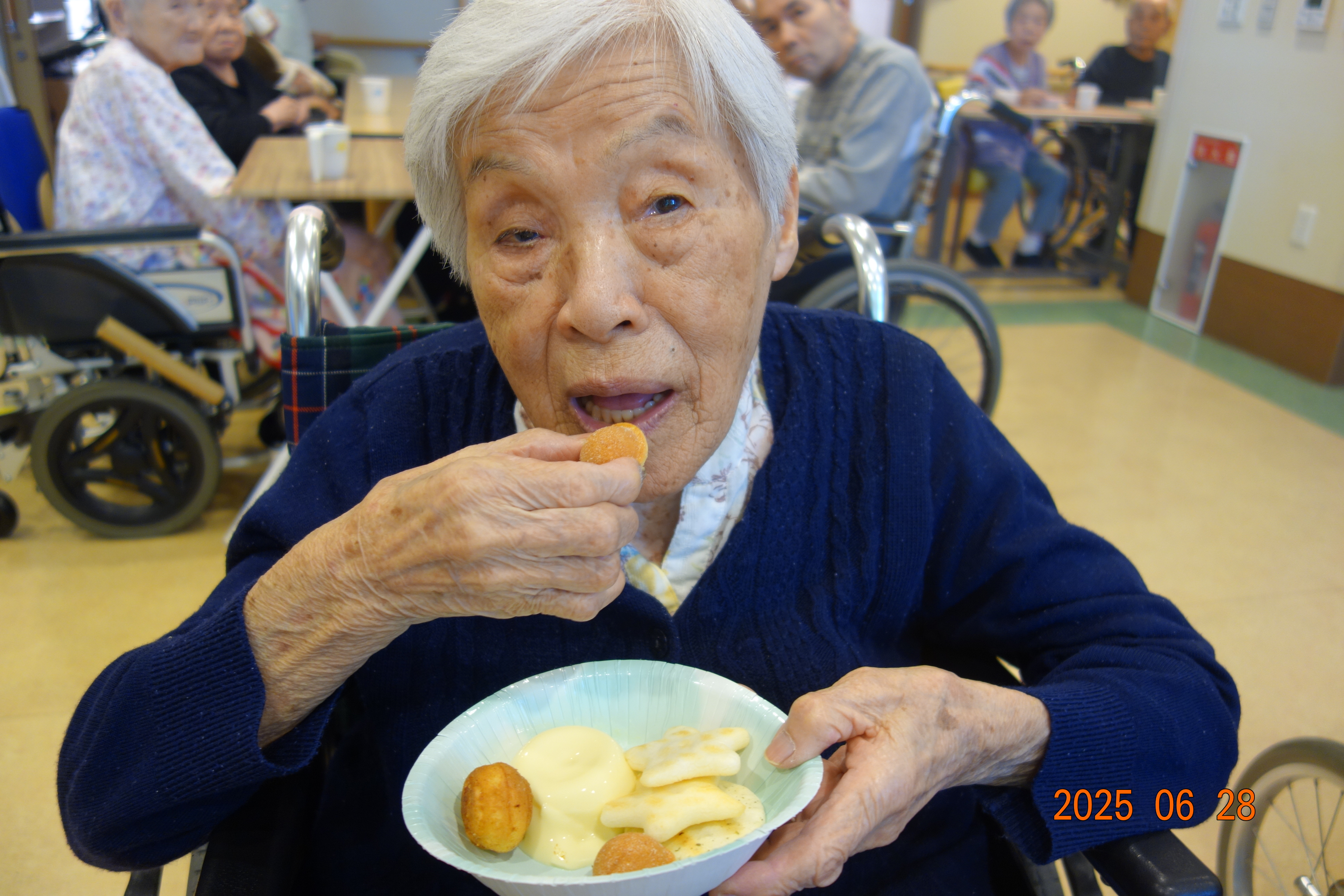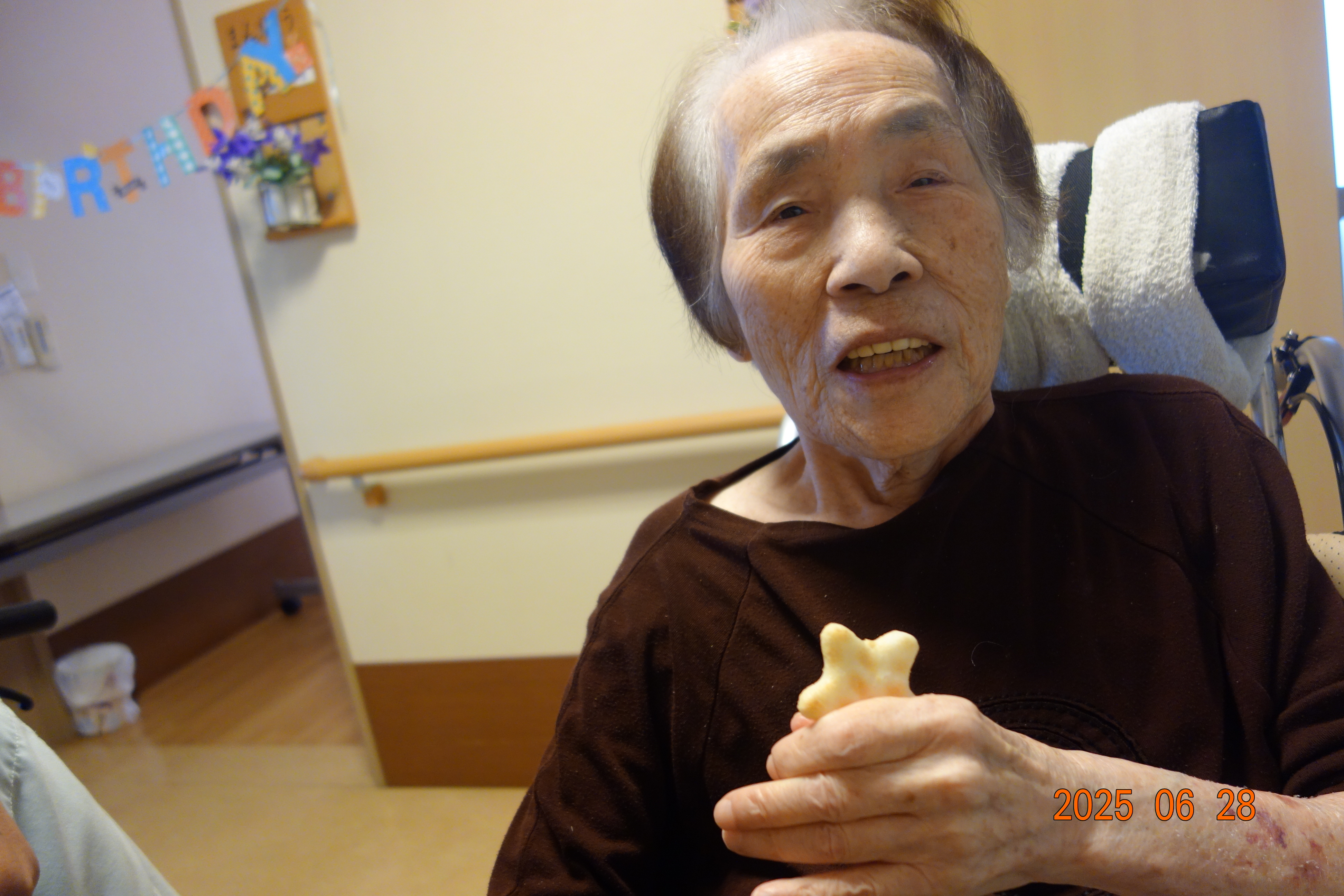 皆様のお願い事が叶いますよう、お手伝いさせて頂きます! 【2025年6月】 ☆お誕生日会☆ 今月は2名の方がお誕生日を迎えられました。 おめでとうございます。 おやつはお煎餅と、手作りプリンになります。