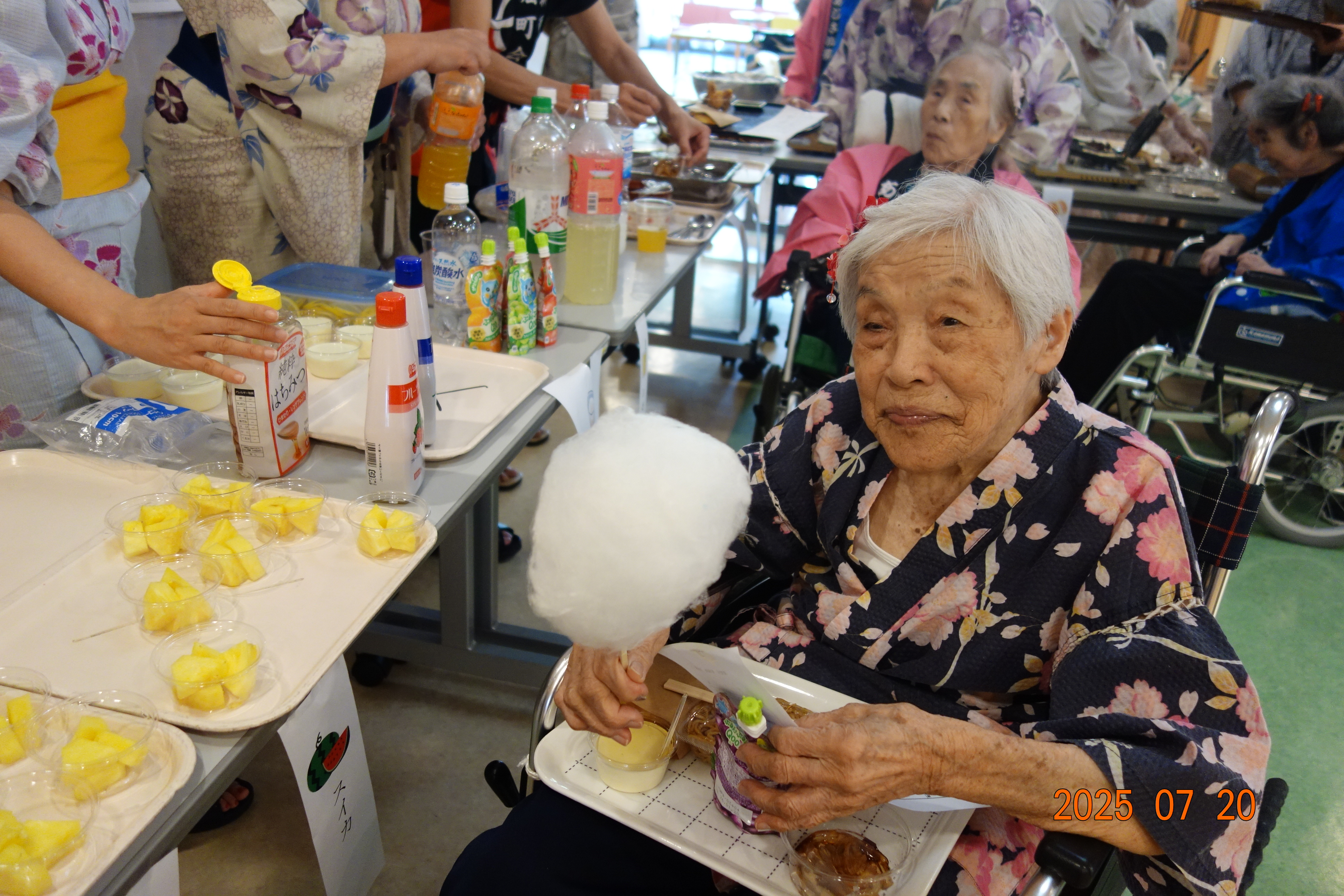 職員手作りのたこ焼きと、フルーツポンチを沢山召し上がって頂きました♬ 【2025年7月】 ★お祭り★ 本日は、あじさい苑のお祭りがありました。