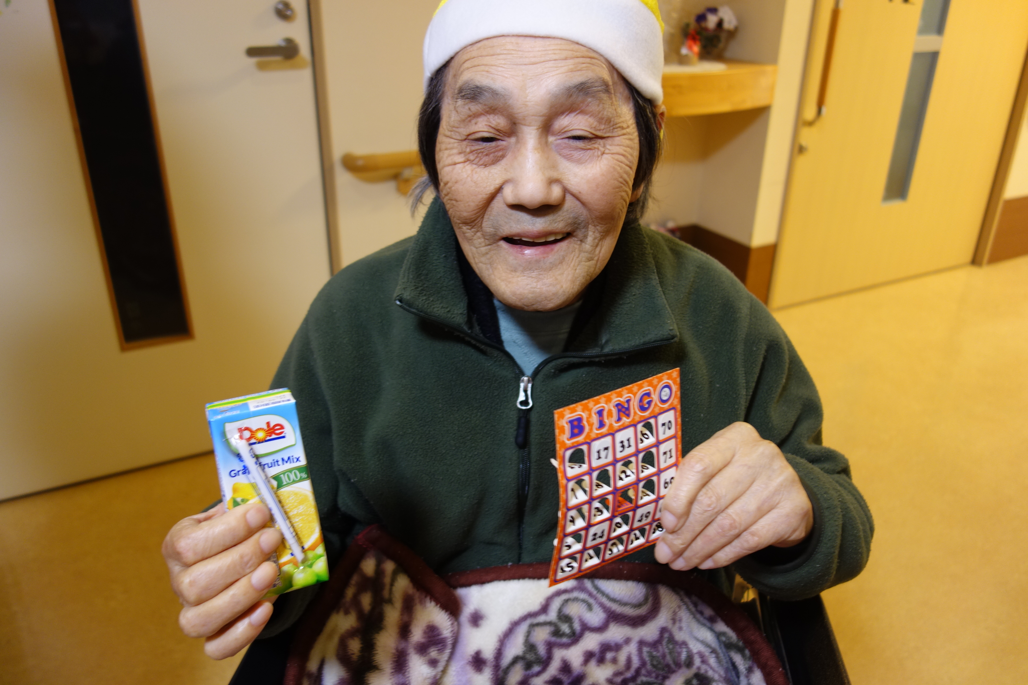 『 季節の花と緑を楽しんで頂けるユニット 』 造花を使用せず、観葉植物や花、鉢植えを増やしていき、季節感を大事にして 快適な環境を目指していきます。 【2025年12月】 ★クリスマス会★ クリスマス会にて、ビンゴを行いました! 皆様、景品を手に笑顔が見られておりました♬