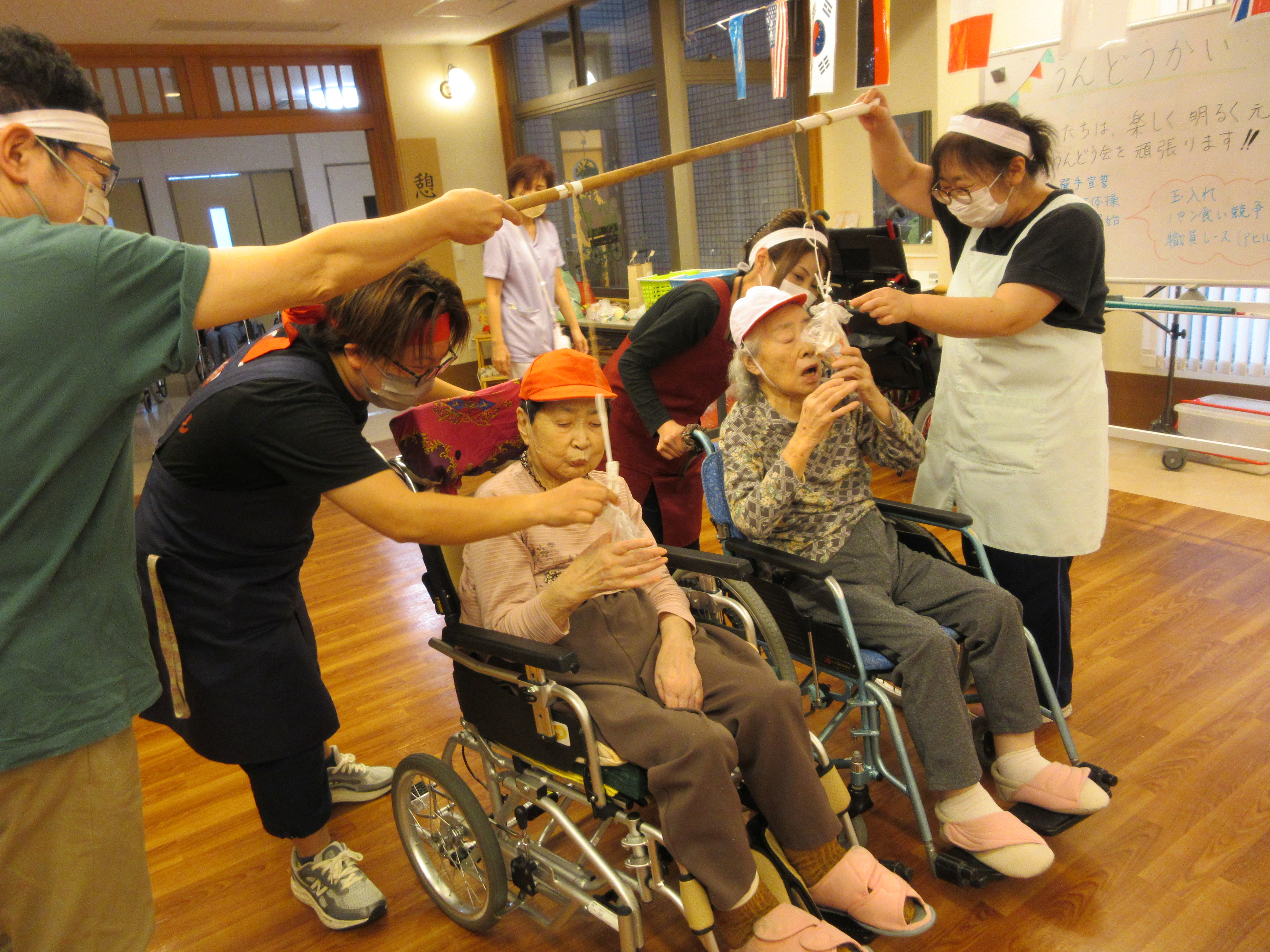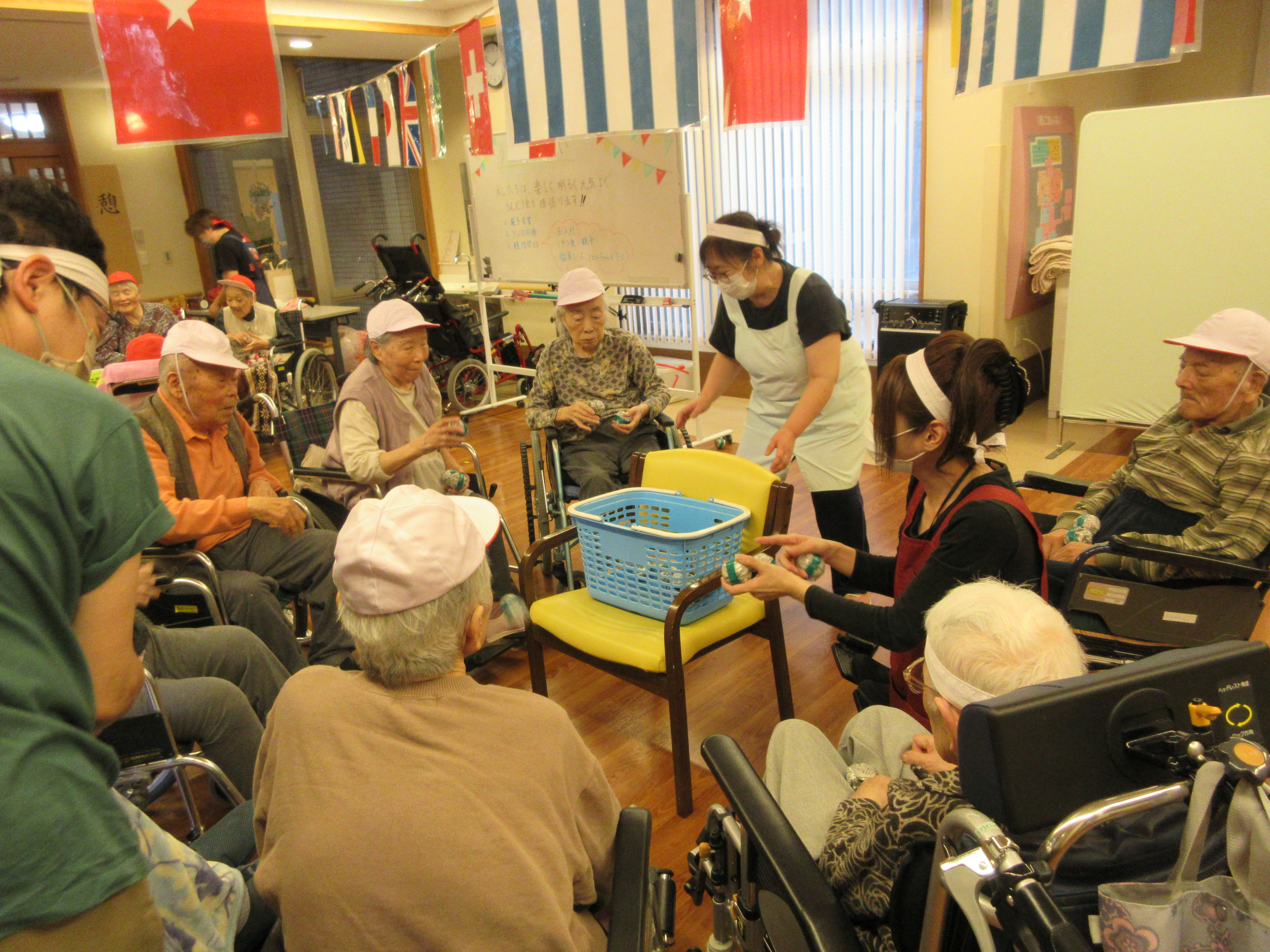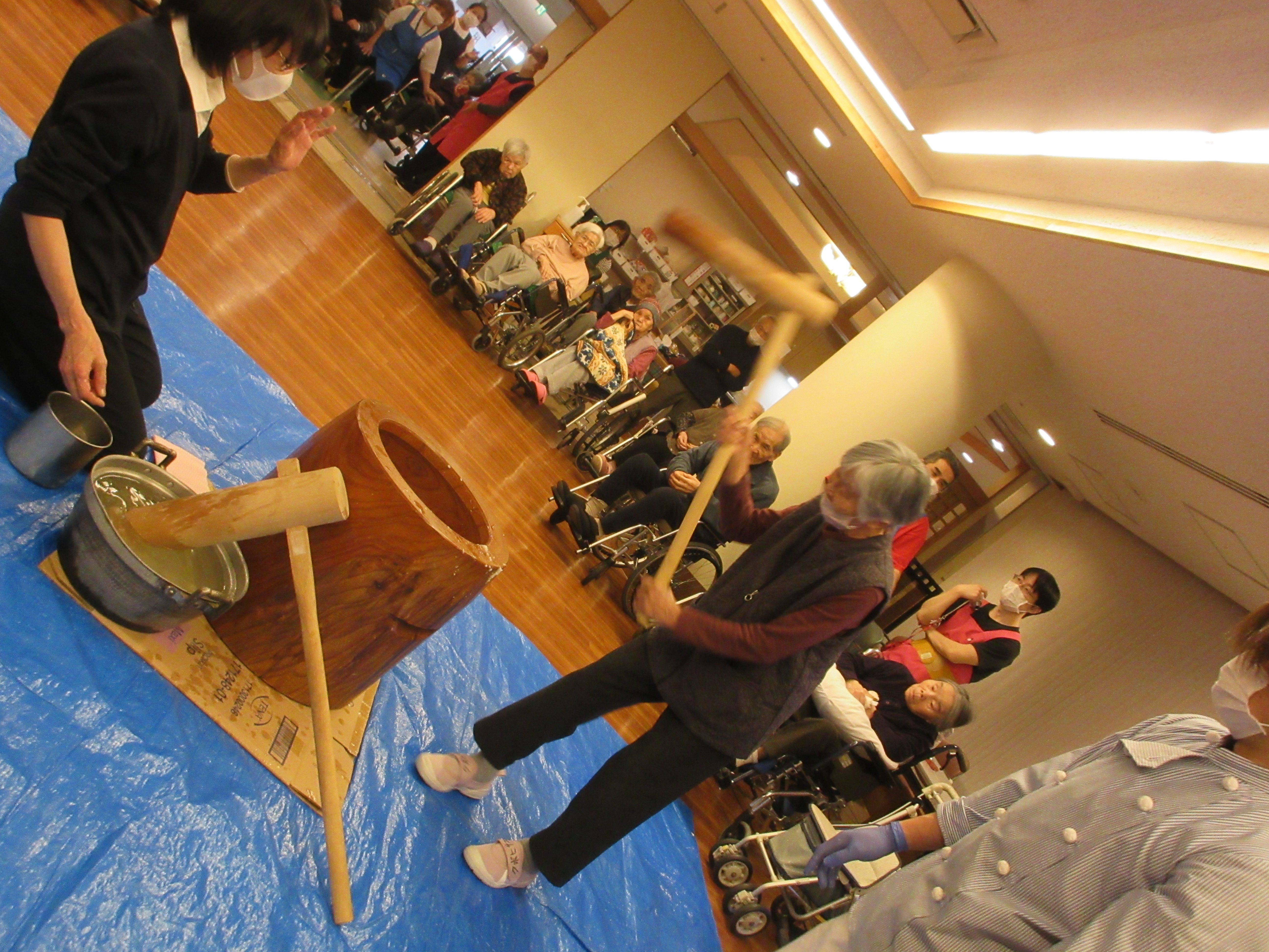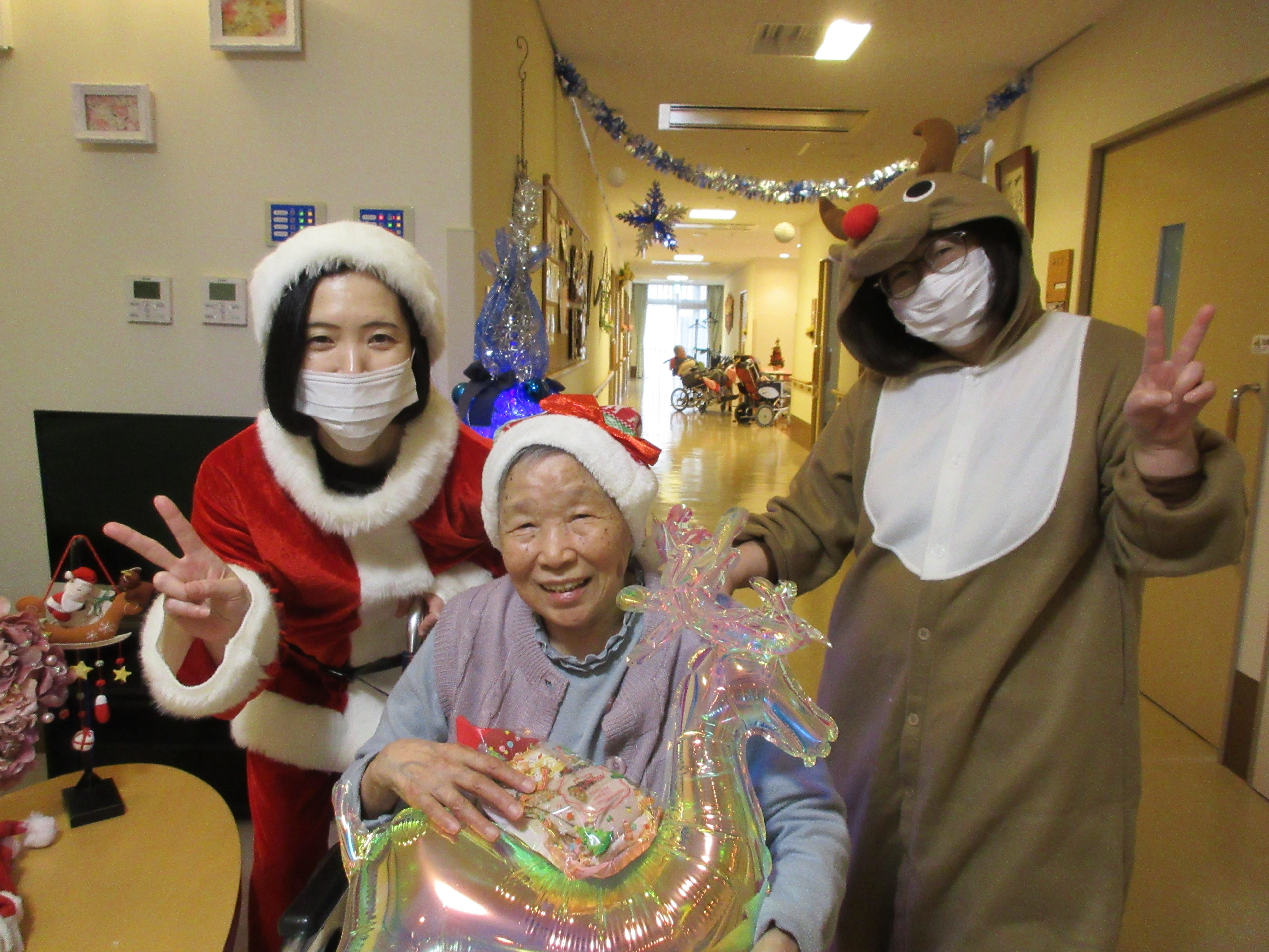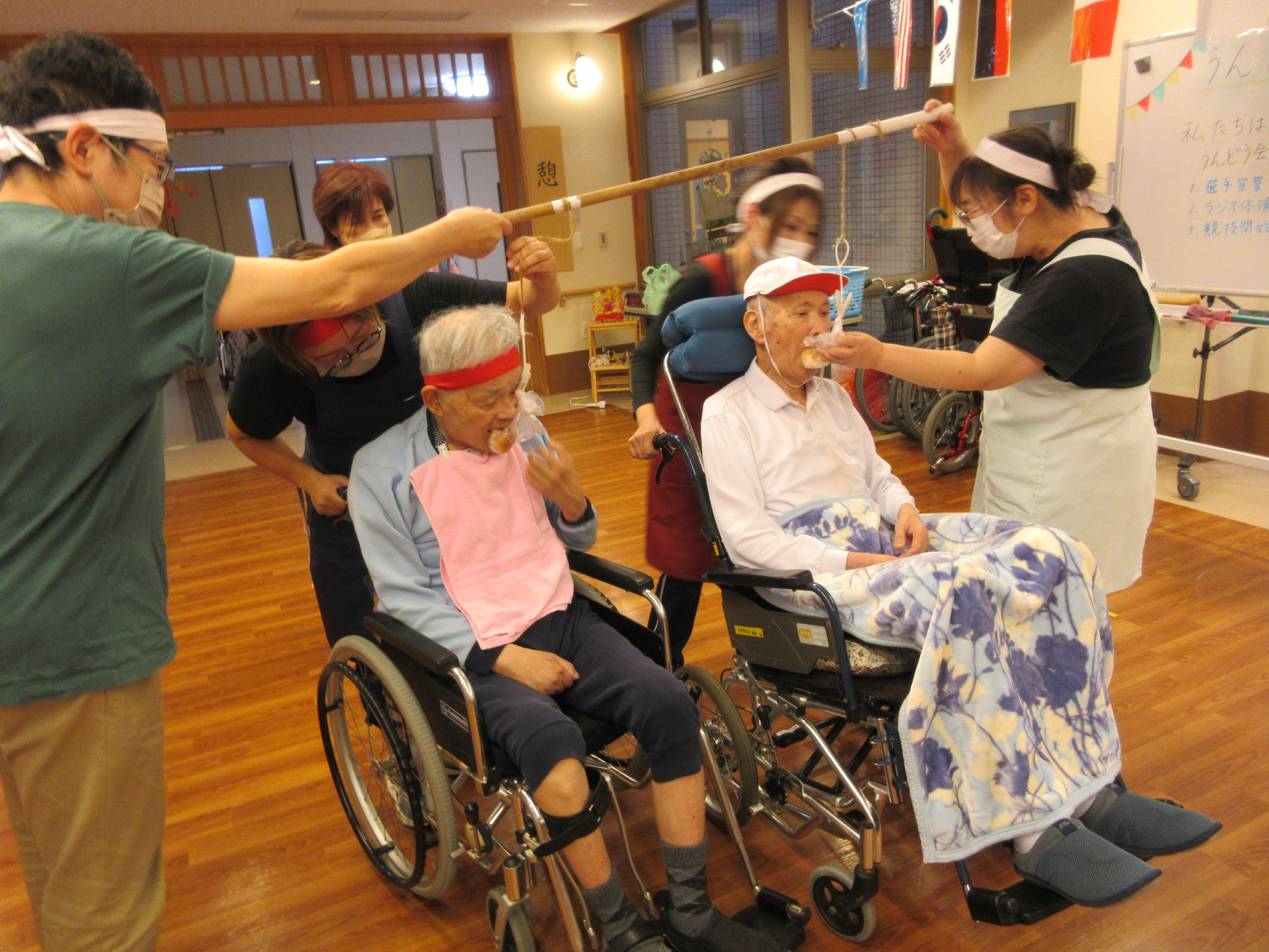 緑ユニットでは、入居者様に「緑ユニットで良かったぁ」と思って頂けるように、お一人お一人の意思を大切にし、寄り添ったケアを目指しています。ユニット内での日常を少しずつですが紹介させて頂きます(^^♪ 2026年新年あけましておめでとうございます。 本年も皆様が穏やかに過ごしていただけるよう、職員一同精進してまいります。 お餅つき出来上がったお餅で鏡餅を作りました(^^)/ クリスマス会ハロウィン運動会運動会を行いました!! まずは玉入れ(≧▽≦) パン食い競争~(^^♪ 最後は職員による二人三脚です♪♪ お疲れさまでした(^^)/ 敬老会緑ユニットでは3名の方がお祝いとなりました♪ 職員の余興は≪桃太郎劇≫でした!! 身体を張った演技に沢山の笑顔がみられました(≧▽≦) 最後は全員でマツケンサンバ♪!(^^)!♪ 昼食にはお祝い膳が提供されました(*^_^*) 9月のお誕生会今月は男性2名が誕生日を迎えられました(^^♪ おめでとうございます!! 夏の終わりには花火を楽しみました(^^)/8月の誕生日会を行いました!!8月は2名の方が誕生日を迎えられました(*^_^*) 「丈夫で長生きします!」「皆様のお陰です」とのお言葉を頂きました(^^)/ おめでとうございます(^^♪