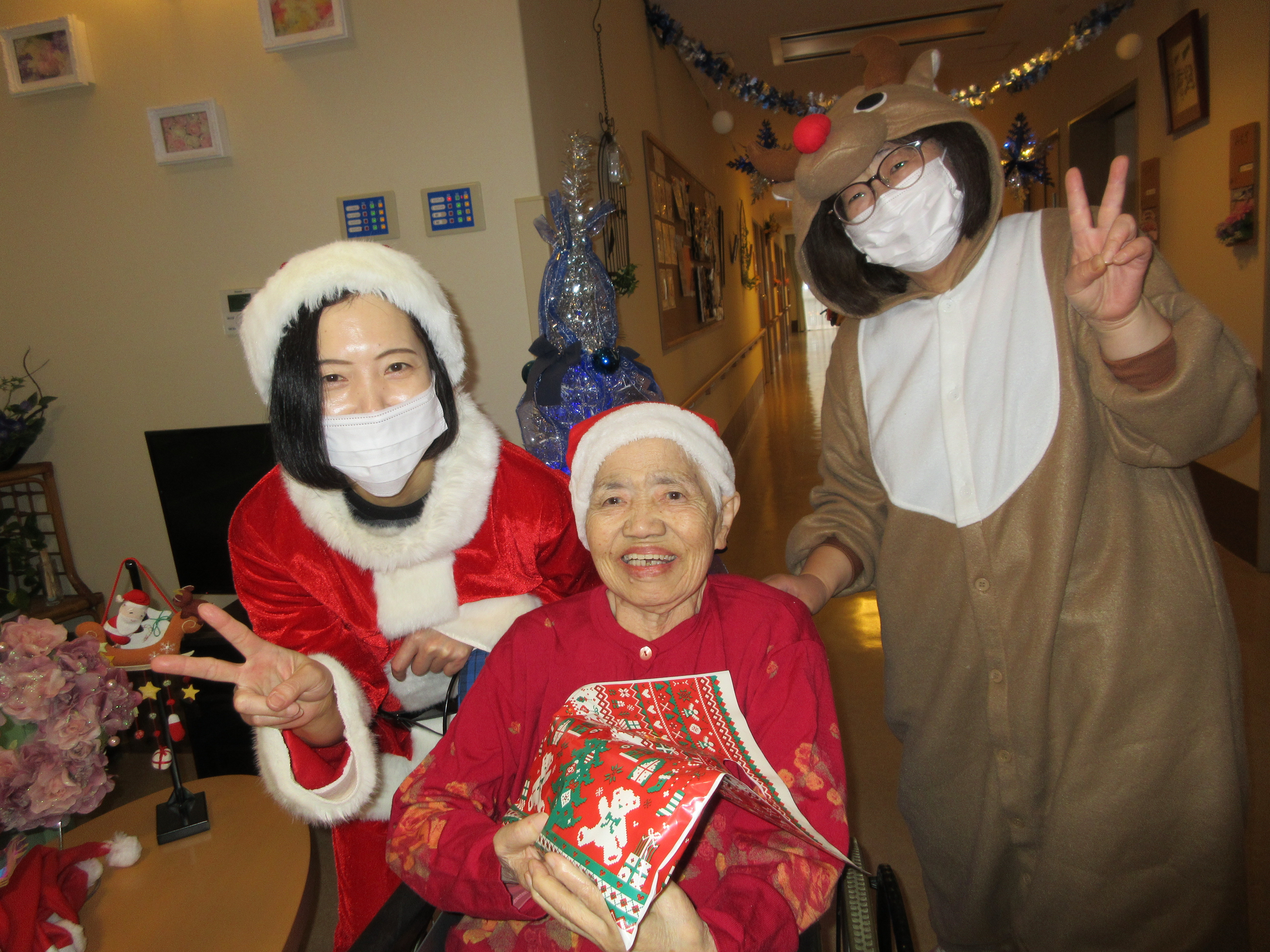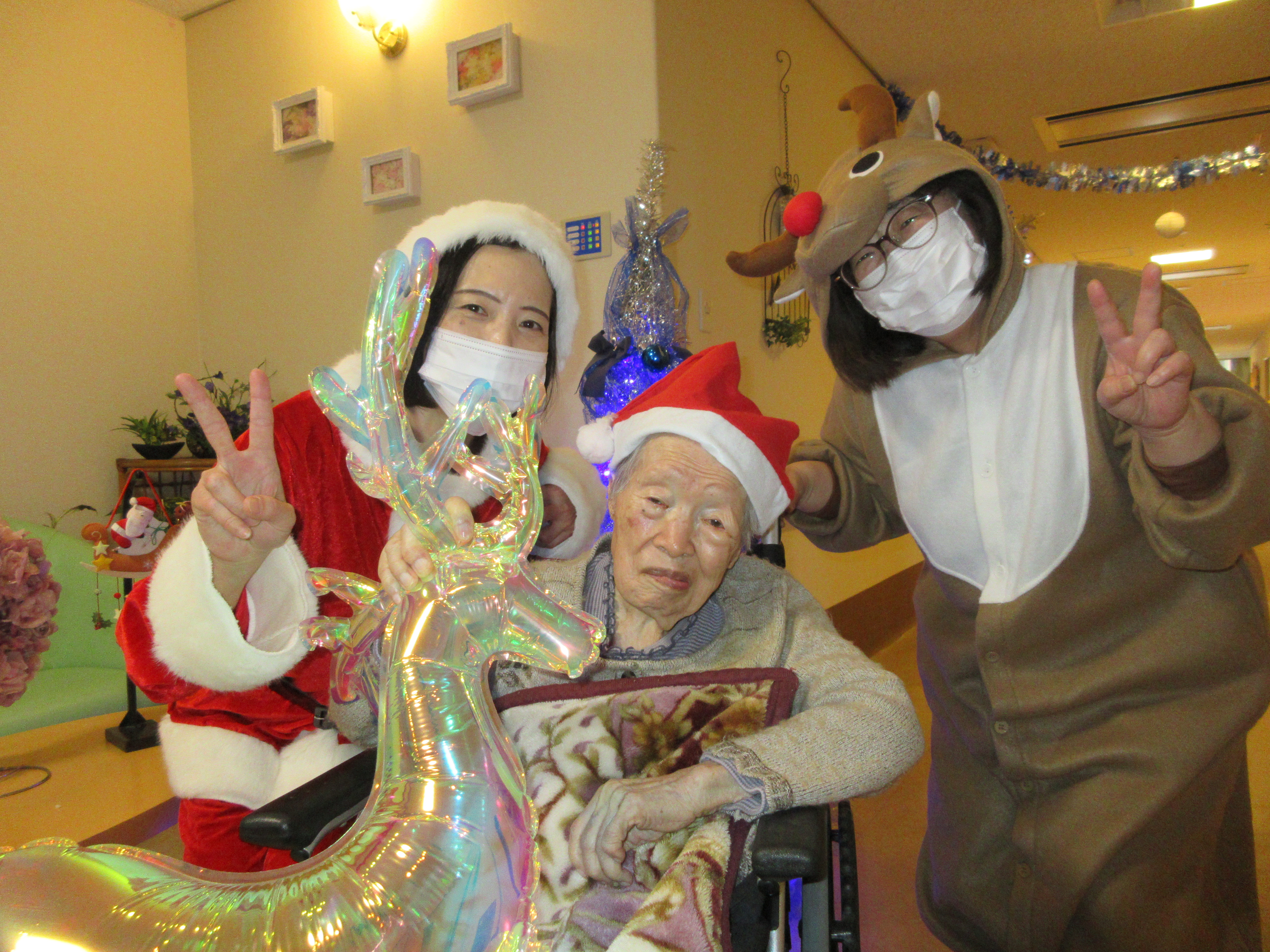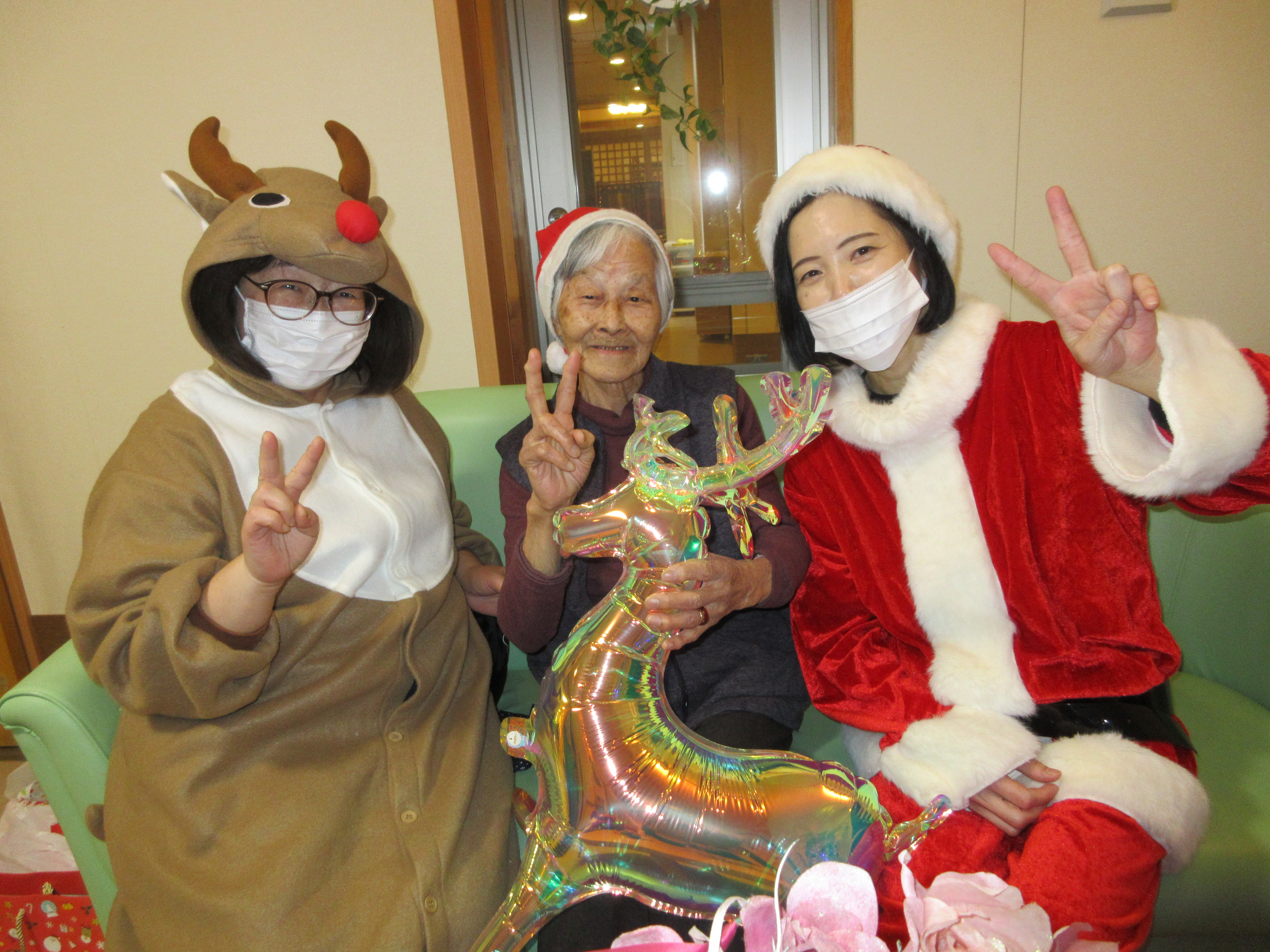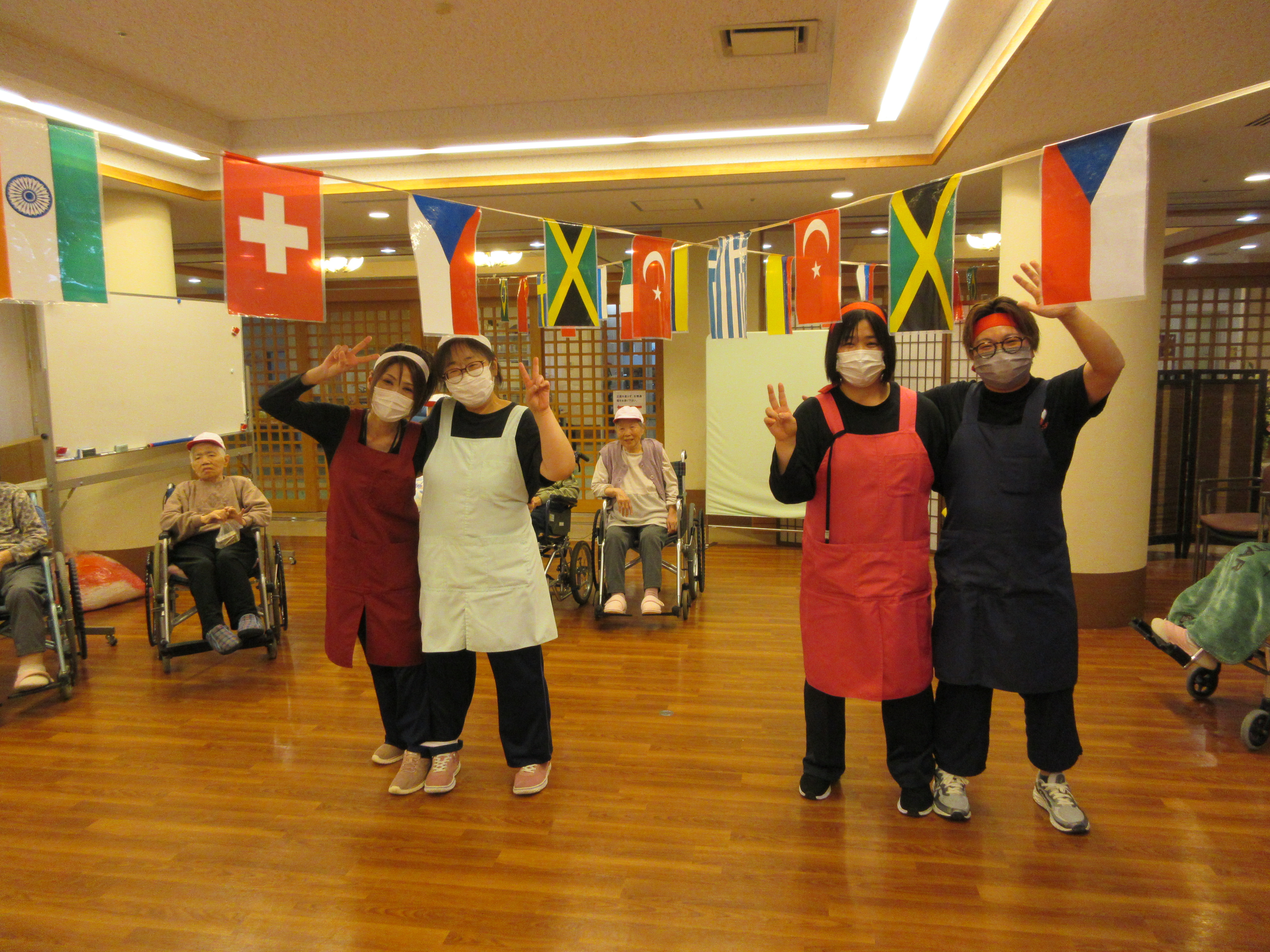 緑ユニットでは、入居者様に「緑ユニットで良かったぁ」と思って頂けるように、お一人お一人の意思を大切にし、寄り添ったケアを目指しています。ユニット内での日常を少しずつですが紹介させて頂きます(^^♪ 2026年新年あけましておめでとうございます。 本年も皆様が穏やかに過ごしていただけるよう、職員一同精進してまいります。 お餅つき出来上がったお餅で鏡餅を作りました(^^)/ クリスマス会ハロウィン運動会運動会を行いました!! まずは玉入れ(≧▽≦) パン食い競争~(^^♪ 最後は職員による二人三脚です♪♪ お疲れさまでした(^^)/ 敬老会緑ユニットでは3名の方がお祝いとなりました♪ 職員の余興は≪桃太郎劇≫でした!! 身体を張った演技に沢山の笑顔がみられました(≧▽≦) 最後は全員でマツケンサンバ♪!(^^)!♪ 昼食にはお祝い膳が提供されました(*^_^*) 9月のお誕生会今月は男性2名が誕生日を迎えられました(^^♪ おめでとうございます!! 夏の終わりには花火を楽しみました(^^)/8月の誕生日会を行いました!!8月は2名の方が誕生日を迎えられました(*^_^*) 「丈夫で長生きします!」「皆様のお陰です」とのお言葉を頂きました(^^)/ おめでとうございます(^^♪