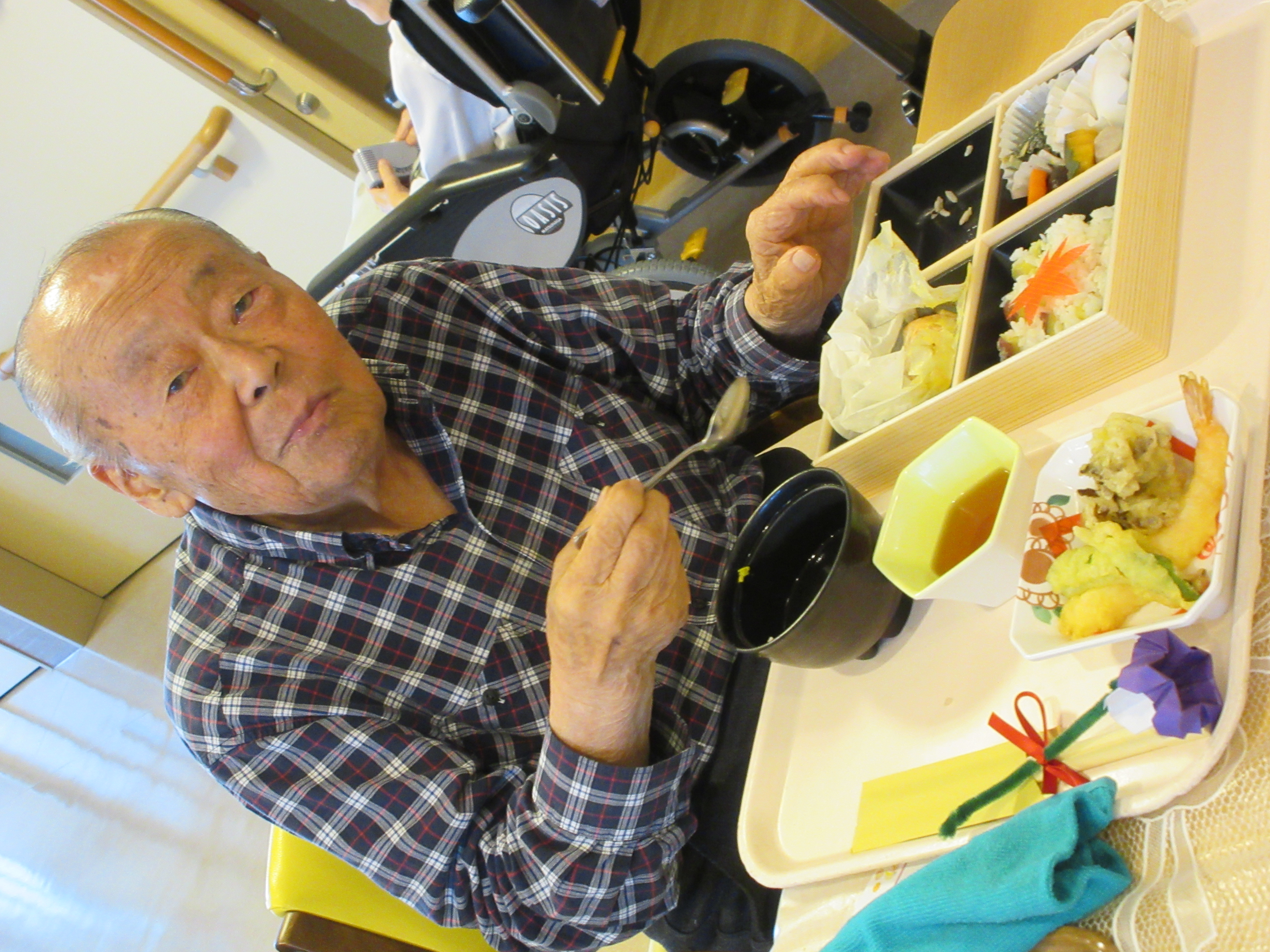 2025/7/20 夏祭りを開催致しました♪猛暑の為、今年も苑内での開催となりましたが、甚平や浴衣に着替え、普段と違う雰囲気に皆様ワクワクされていました(≧▽≦) 模擬店では綿あめ、から揚げ、たい焼き、大判焼き、ところてん等々沢山並んでいました!! そしていよいよ夏祭りの始まりです♪♪ あじさい苑太鼓組の皆様、毎年盛り上げてくださりありがとうございます!! 抽選会も行われ、3等が「ひんやり寝具セット」、2等が「スイカ、メロン、ぜりー詰め合わせ」、1等は「カタログギフト5千円分」でした(≧▽≦) 当選された皆様おめでとうございます☆ 沢山の笑顔が見れた、とっても楽しい夏祭りでした(*^^*) ユニットにある畑の野菜を収穫しました♪ 今回はカブと大根を浅漬けに(*^^*) 今年は猛暑で野菜たちにも影響が出ていましたが収穫出来た物は美味しく頂きました!! 短冊に願いを込めました☆ミ 皆様の願いが叶いますように・・(>人<) 2025/6/27 マリンスタジアムへ野球観戦に行ってきました(^^)/
